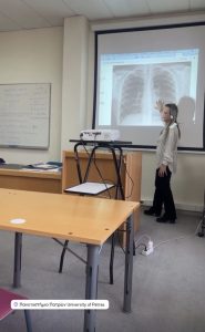 Dr. Vasiliki Georgiopoulou, physician and Assistant Professor in the Department of Nursing, visited our private students, on Monday, March 16. We became familiar with medical terminology, related to the respiratory system, and learned how to “read” an X-ray. We played with cards and engaged in role-playing games (doctor–patient and pharmacist–patient). The students had prepared questions about asthma, snoring, allergies, and more, and received valuable answers from the doctor.